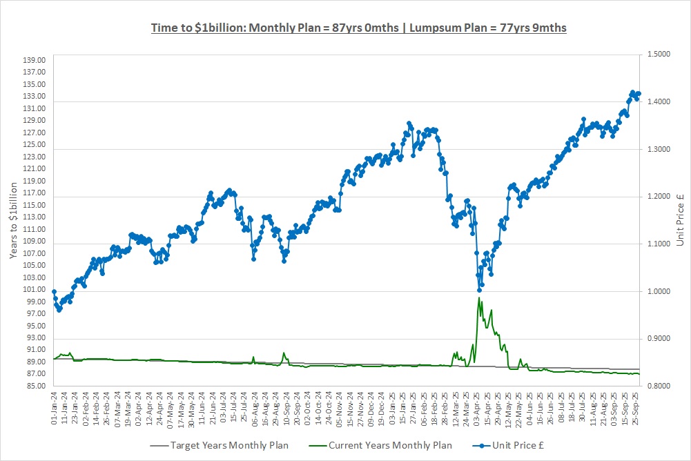 Also, the Lumpsum Plan is now predicted to take less than 78 years to make £1 billion which if you are thinking about family and a legacy, is not long at all.