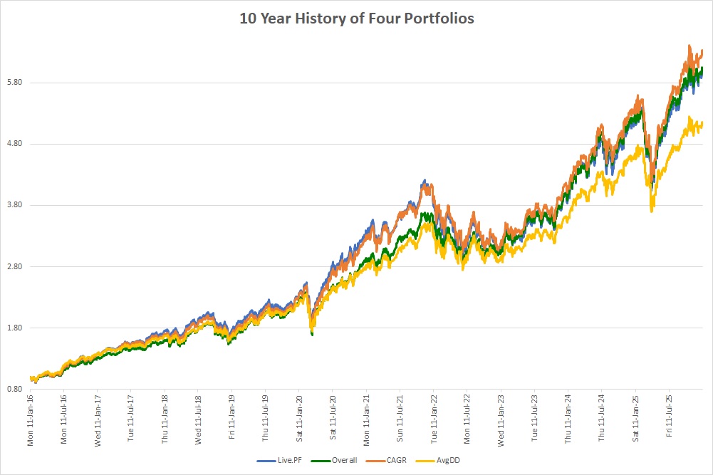 | Portfolio | Live.PF | Overall | CAGR | AvgDD |
