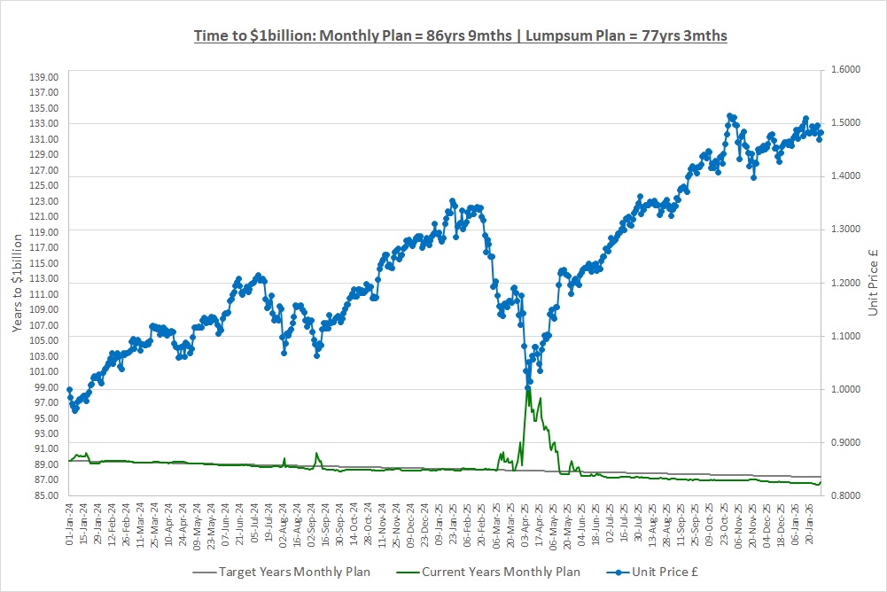 Our Lumpsum Plan will be worth $1billion in: 77yrs 3mths